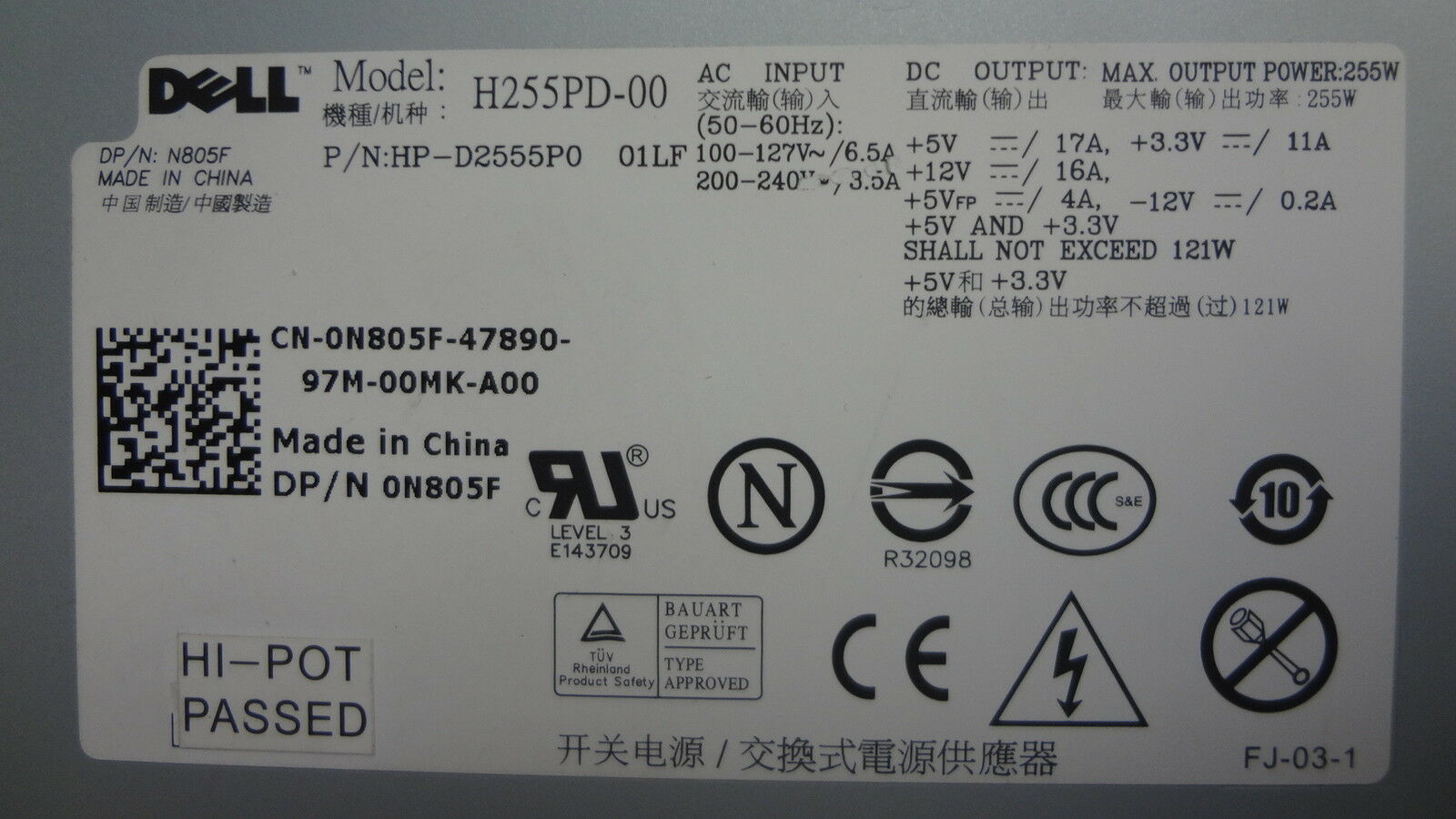Dell N805f Fuente De Alimentacion De Mini Torre De 255w Para Optiplex 360 760
