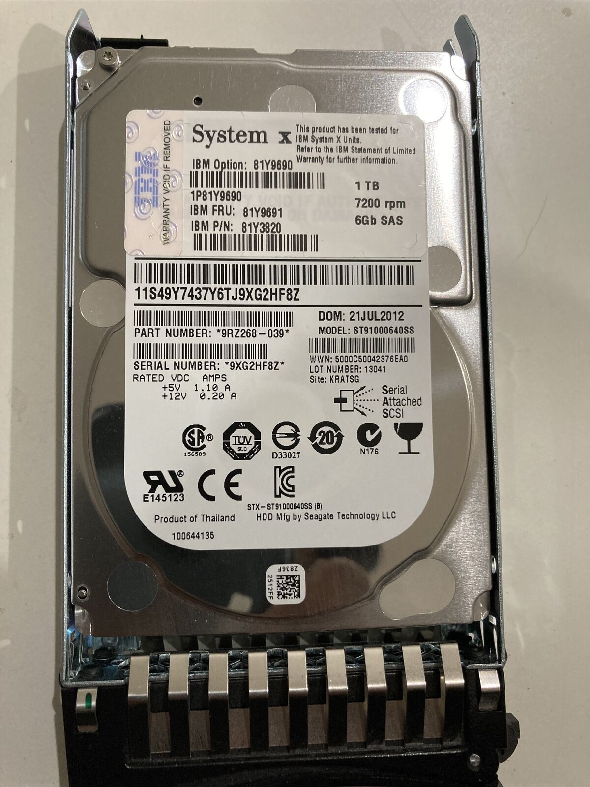 Ibm 81y3820 1tb 7.2k 6gbps Sas Hdd 2 5" Caddy